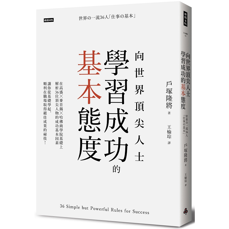 為什麼那些世界頂尖的成功人士能獲得偌大的成就呢?《向世界頂尖人士學習成功的基本態度》的作者戶塚隆將,藉由分享36個不同領域人士的信念,帶領我們認識這些成功人士的「工作基本態度」。書中所描述的這些「基本態度」並非艱澀的大道理;相反的,它們都能被實踐於我們的日常生活中,且適用於各行各業,非常適合我們作為提升自己的參考。