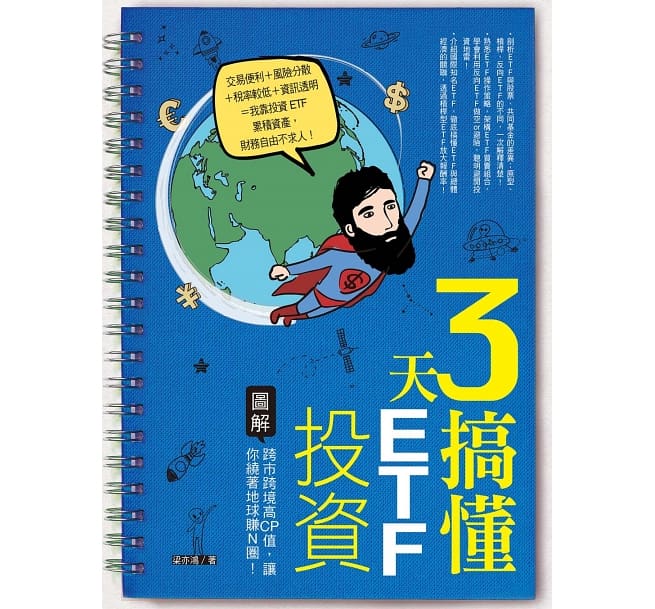 《 3天搞懂ETF: 圖解跨市跨境高CP值, 讓你繞著地球轉N圈! 》,作者以淺顯易懂的方式,搭配圖文解說介紹ETF投資的基本概念,是一本非常適合對ETF不太了解,但又期望在短時間內,能對ETF有個基本認識的讀者,當作入門書籍來閱讀。