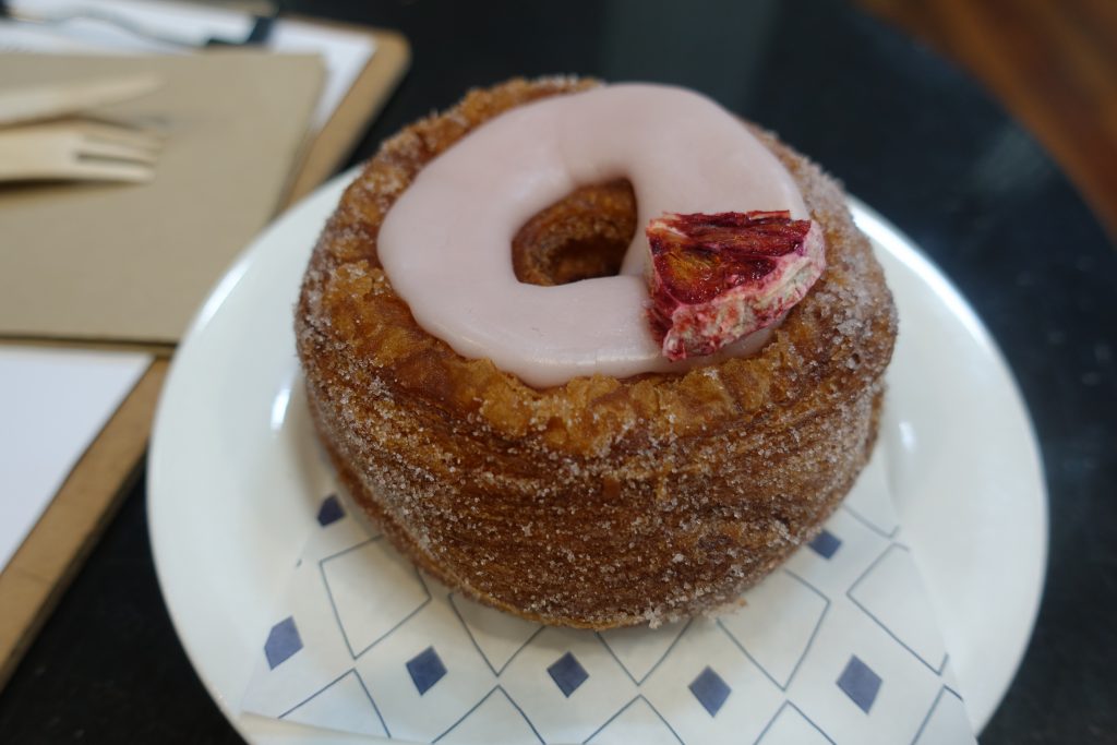 Cronot起源於美國,是Crossaint (可頌) 和Donut (甜甜圈)的混合體。顧名思義,Cronot結合了可頌多層的鬆化口感,輔以甜甜圈油炸方式再裹上糖粉。雖然我個人還是喜歡可頌口感多一些,但一次可以嚐到兩種口味的甜點,還是非常值得嘗試!