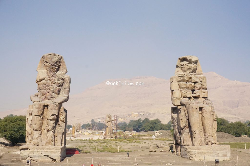 『曼儂巨像』是前往帝王谷會順道經過的一個景點(不需要收門票)。這裡有兩座高約20米的神像,雖然可以看出神像端正的坐著,但實際上面部表情已經風化到幾乎不可辨識。