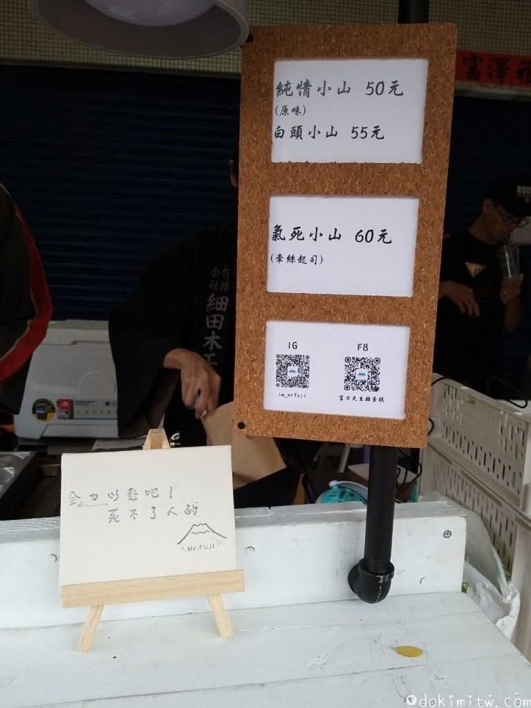 目前只有販售三種口味的富士山雞蛋糕:純情小山 (原味)、白頭小山(糖粉)、氣死小山 (牽絲起司)。不曉得之後會不會增加其他口味?