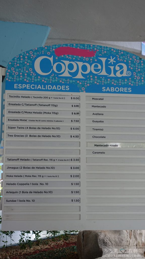 Coppelia每日公告所販售的冰淇淋口味(價格標示為CUP)