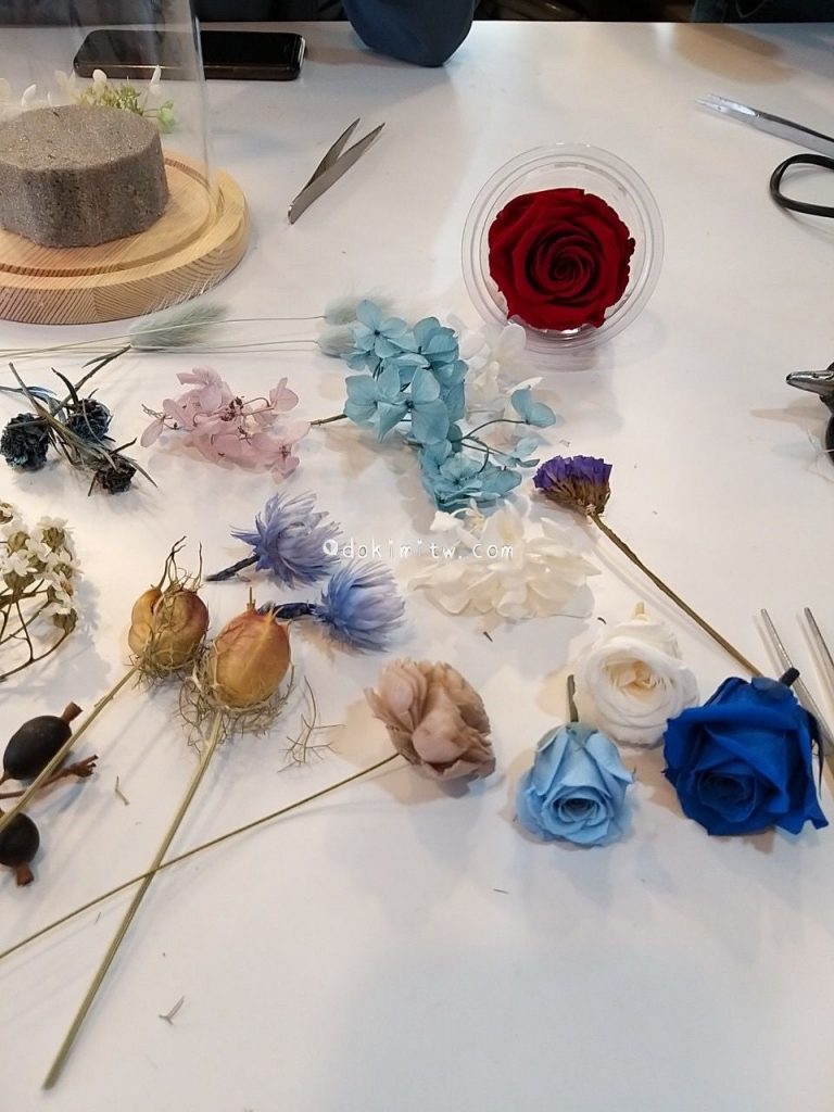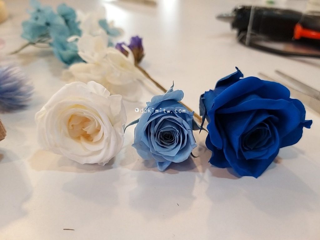 由於今天來上課的剛好都是初學者,開始製作永生花前,老師也特別跟我們解釋了永生花、乾燥花的差別。