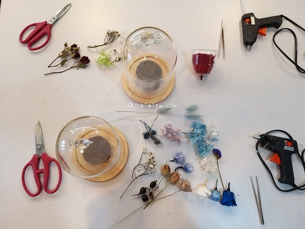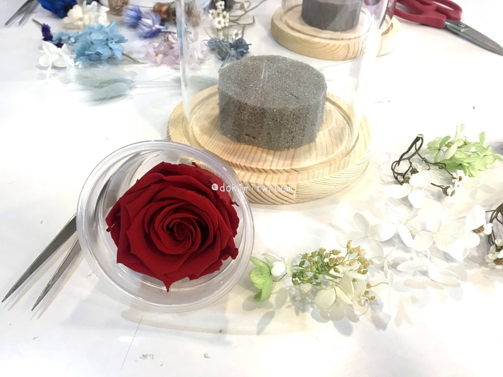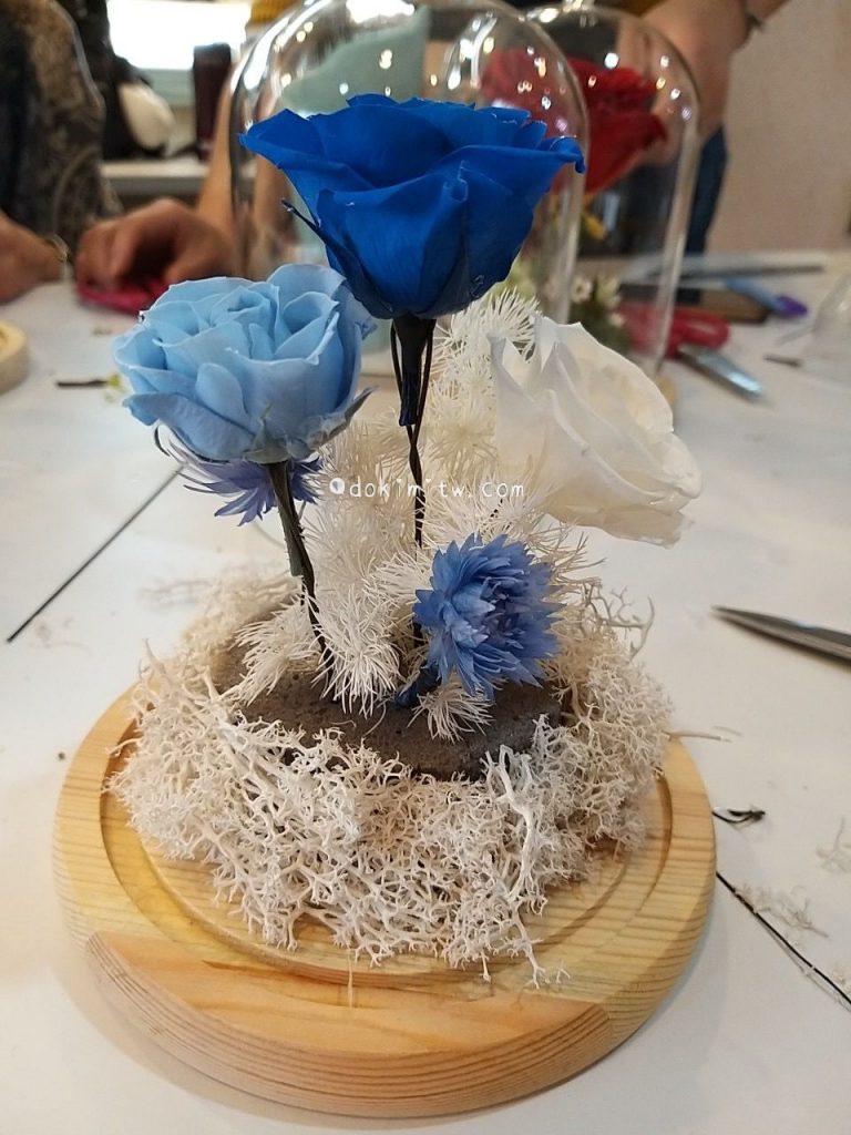老師說今日我們嘗試的花盅對於初學者算是複雜度比較高的作品,因為永生花要好看,最重要的是要能成功『開花』,這可是一件相當考驗技術與耐心的事情。