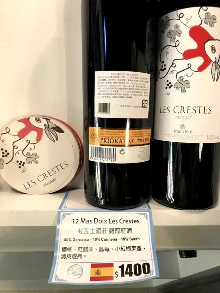 同樣為Mas Doix生產的(12)Les crestes (雞冠紅酒),雖同為Priorat產區的酒,但這款雞冠紅酒除了使用Priorat常見的Garnach(80%)和Carinena(10%)之外,還罕見的加入了些許國際品種Syrah(10%),聞其來可以感覺到淡淡的紫羅蘭花香味,酸度和果香表現都很不錯。