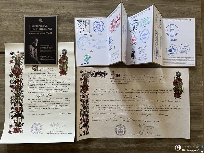法國之路115km證書,免費和自費(€3)各一。另外,朝聖者護照沿途蓋章紀錄。