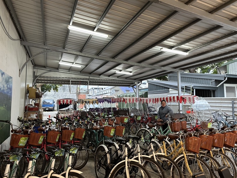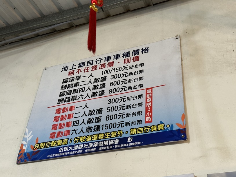 池上火車站附近有蠻多間可以租借腳踏車的店家,這次選擇的是離車站不遠的「客尊鐵馬」,租借單人自行車有$100/$150的價位,我們選擇的是$150的淑女車款。