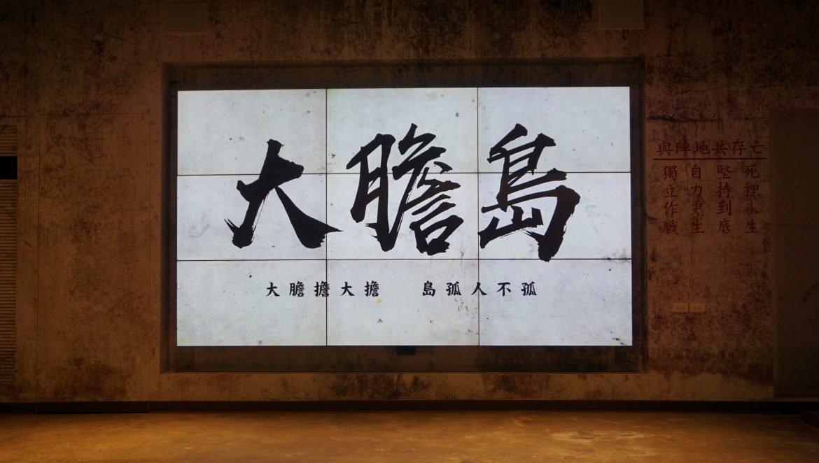 大膽島名氣最響亮的「心戰牆」,建於民國75年,高3.2公尺、長20公尺,正面寫著:「三民主義統一中國」,背面則有各式戰時的打氣標語。
