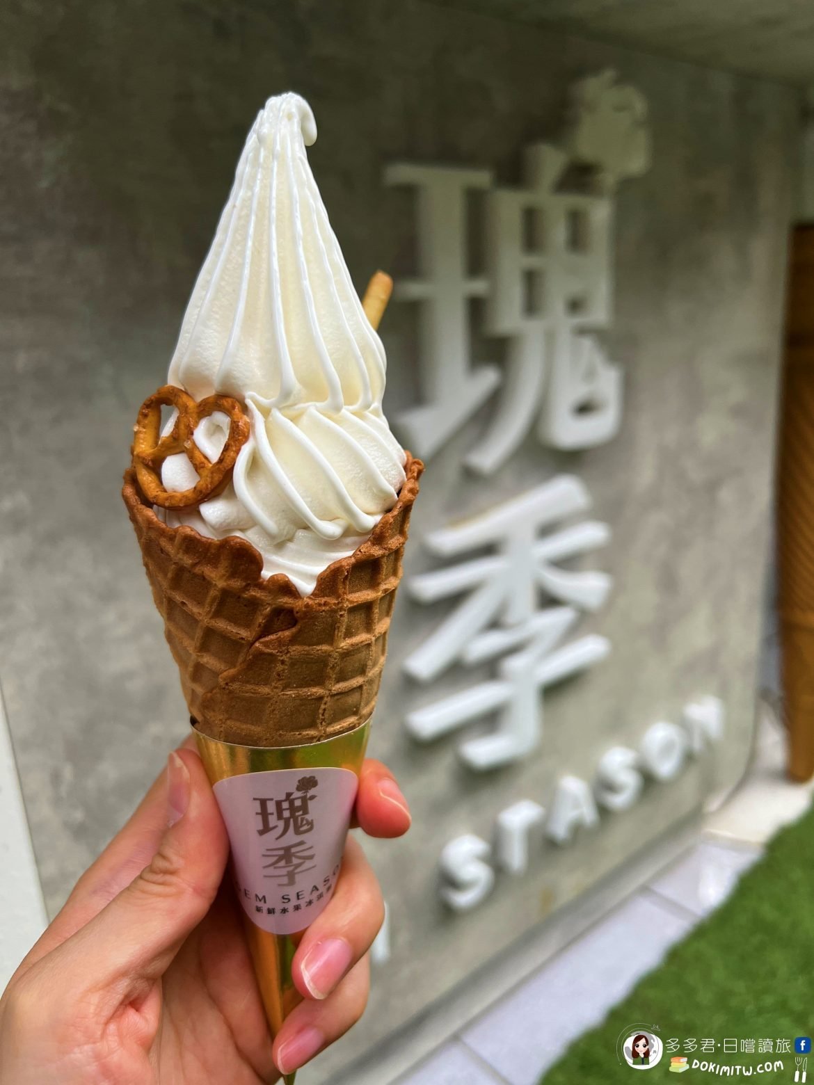 慶祝疫情後,日本重新開放觀光旅遊,闆娘特別人選用「京都小山園」做成的的「特選抹茶」口味。不過比起抹茶口味,我還是更愛「瑰季」以各式台灣當季水果做成的霜淇淋!