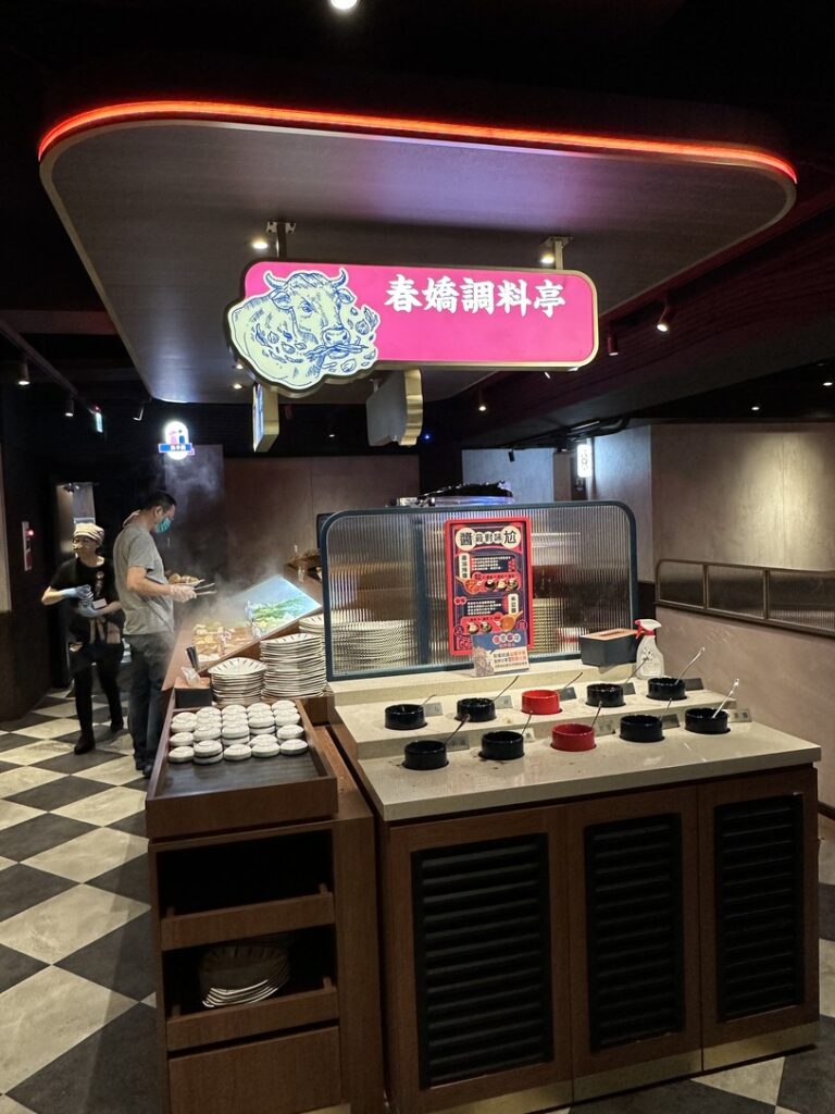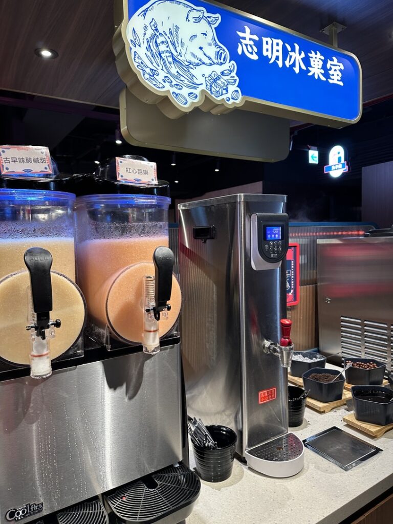 飲料區跟醬料區的名稱都取得別出心裁,用的是「台味」十足的「志明與春嬌」。飲料部分少了常見的碳酸飲料,取而代之的是「酸梅冰沙」、「紅心芭樂冰沙」,相當具有台灣風味。