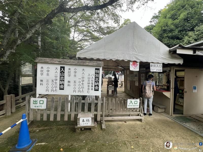 「書寫山圓教寺」參拜入口,入山志納金大人JPY 500。如果寺內搭接駁車往返,則特別志納金大人JPY 1,000。