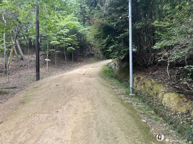 這條路直走往下至山麓,是「西坂參道」,圓教寺六條傳統登山參道之一。從觀音參道走過來,則為「東坂參道」。