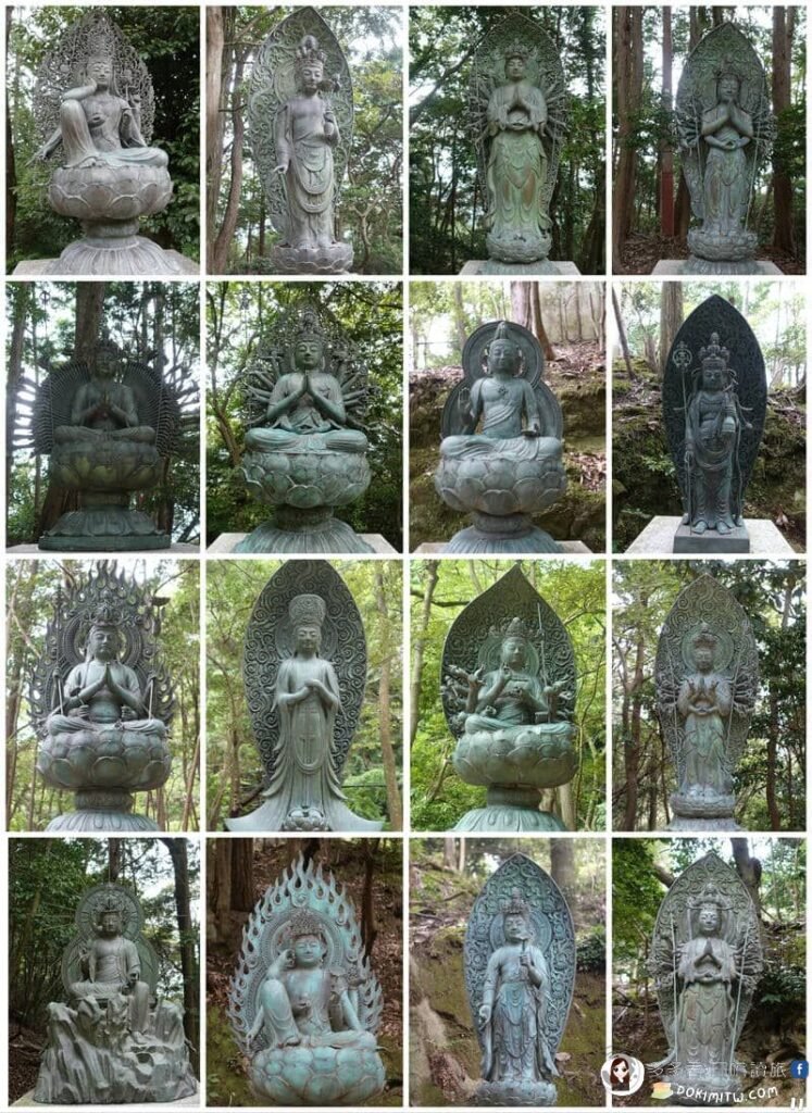 其中,除了第二十七番「書寫山圓教寺」的分身石像,排列首位於前面。其餘32番分身石像,彙總如下:(順序則先左至右,然後依序由上而下)