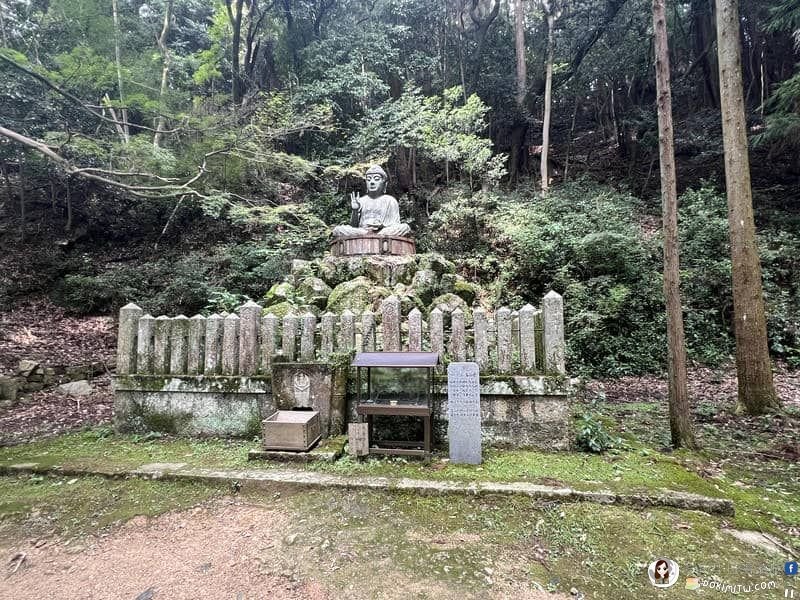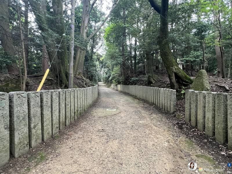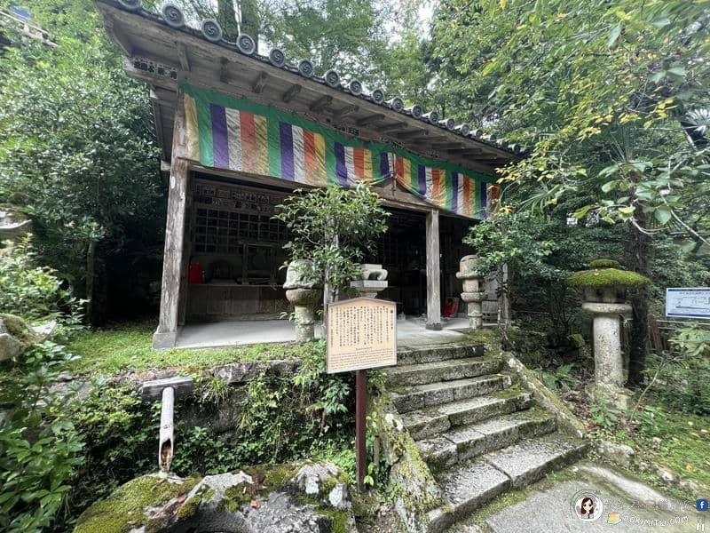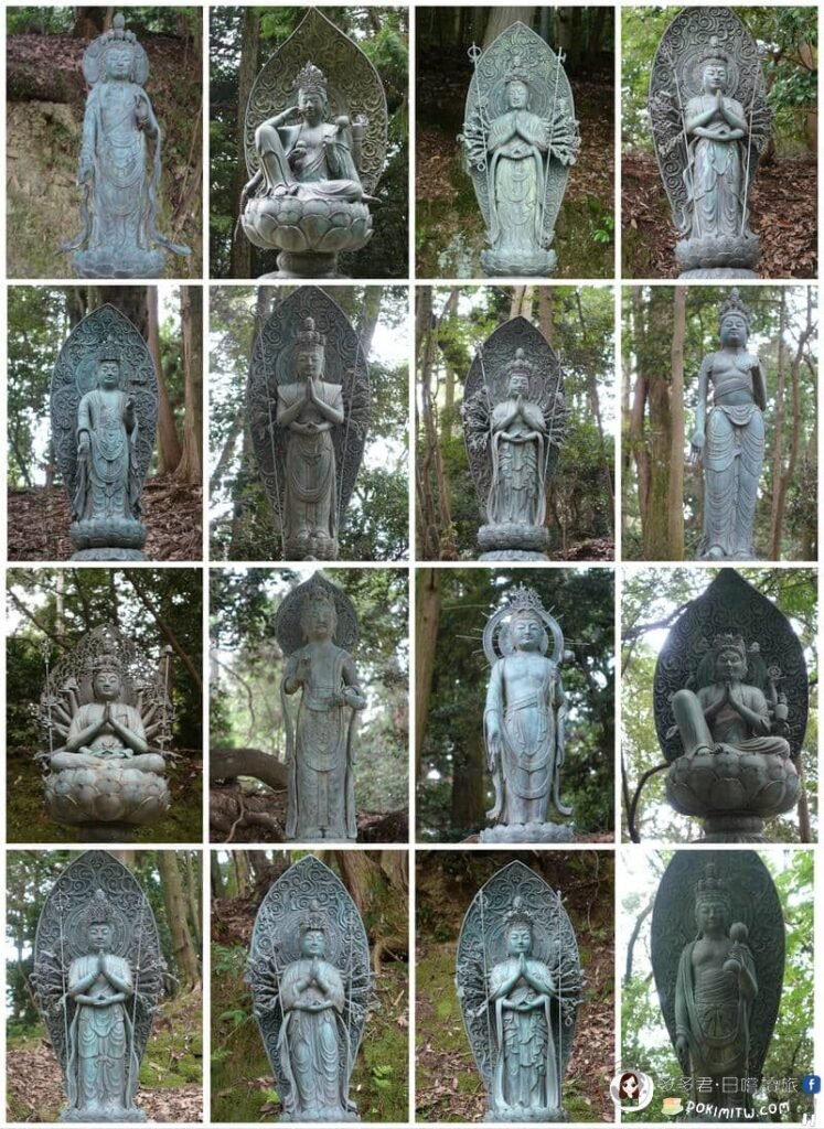 上山的參道,一條獨特的朝聖路,沿途安置西國三十三靈場各寺院御本尊的分身石像,讓朝聖者可以參拜禮佛,因此這條參道也稱為「西國三十三觀音道」,而且特別立有「西國巡禮之道」石碑。