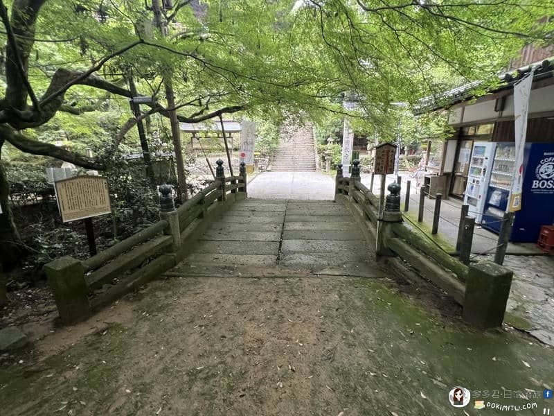 「石造笠塔婆」(左)在湯屋橋前,高1.37公尺,這座石塔上的浮雕是淨土宗的信仰核心「無量光佛」阿彌陀如來,並且刻著「鎌倉時代後期延慶4年(1311年)」銘文。(淨土宗是日本最大的佛教宗派之一)。