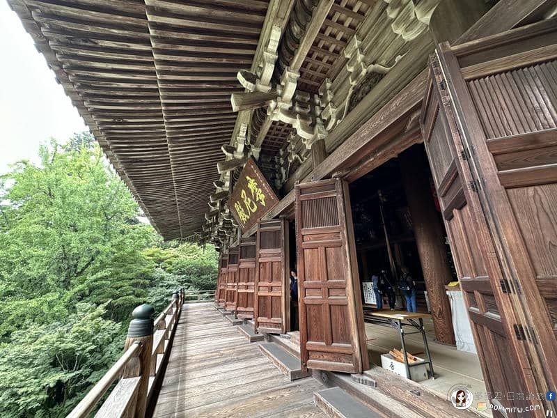 從「摩尼殿」簷下迴廊俯瞰的景色,右上角為「葉月(はづき)茶屋」。