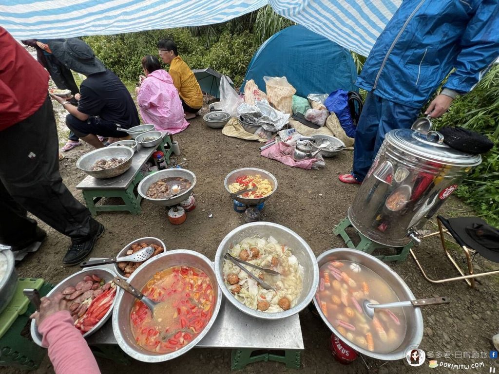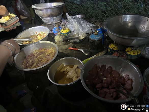 18:00吃晚餐的時候還下著小雨,在山上的菜色雖然不如平地,但對我來說,卻簡單得很豐富!而且還有火鍋料湯,其實很不錯啊!