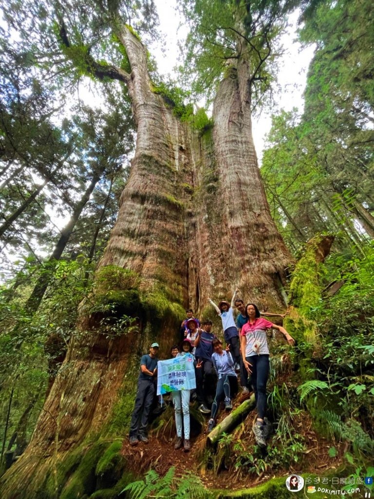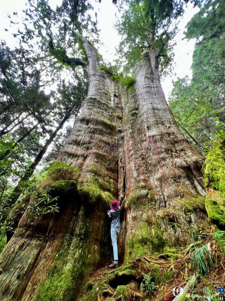 在這裡脫下重裝裝備,輕裝出發真的是好走許多,去程大概只花了45分鐘,就到了「眠月神木」。有4000年歷史的「眠月神木」,是台灣十大神木之一。不得不說,「眠月神木」真的超大的,而且可以近距離繞一圈,裡頭還有個樹洞呢!(可惜回來才知道樹洞其實可以爬進去,所以沒能有機會一睹樹洞內部的風采)。