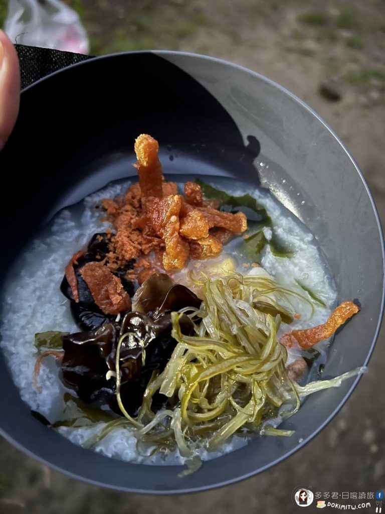 行程來到了第三天,今天一樣超早在4:00就起床收東西,5:00準備吃早餐,早餐一樣是山上常見的稀飯,但和前一天不同,今天的稀飯是有加料的海帶粥!
