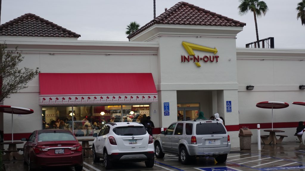2019年美西過境快閃行,入住在好萊塢 (Hollywood)的Orange Drive Hostel,剛好離旅館不遠處就有一家In-N-Out Burger的分店,趁著離開洛杉磯前的最後一個下午,硬是擠出時間,說什麼也要帶著老爹來這裡開開眼界,順便大飽口福!