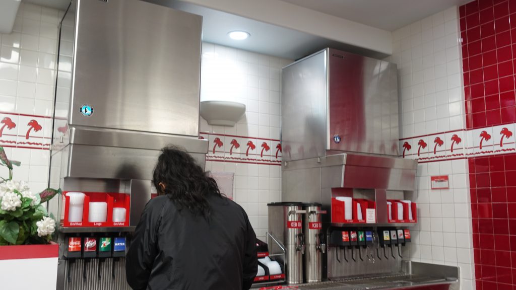 這裡的菜單品項相當簡單,可以選擇的品項其實並不多,只有:漢堡、薯條、飲料、奶昔(香草、巧克力、奶昔)。即便是漢堡,種類也僅有三種:Double-Double (雙層起司堡= 兩片牛肉+兩片起司)、Cheeseburger (起司漢堡)、Hamburger (漢堡)。