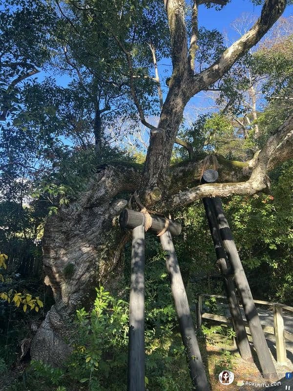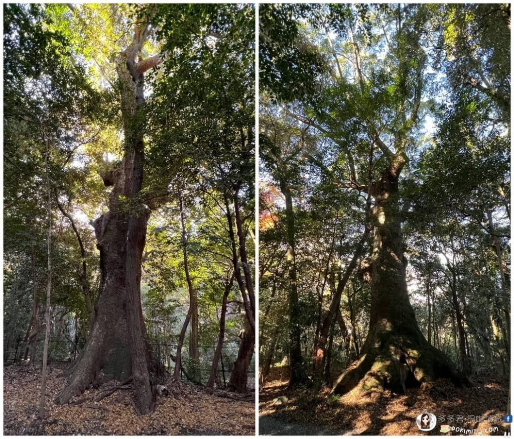 在手水舍對面,一株被稱為「清盛楠」的樟樹。這樹已近千年歷史,現在看起來像是兩棵樹,其實卻只是一棵大樹。