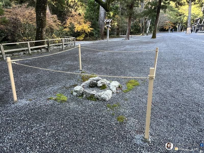 「三石」,舉行河畔淨化儀式的地方,周圍繞著一條神聖的繩索。