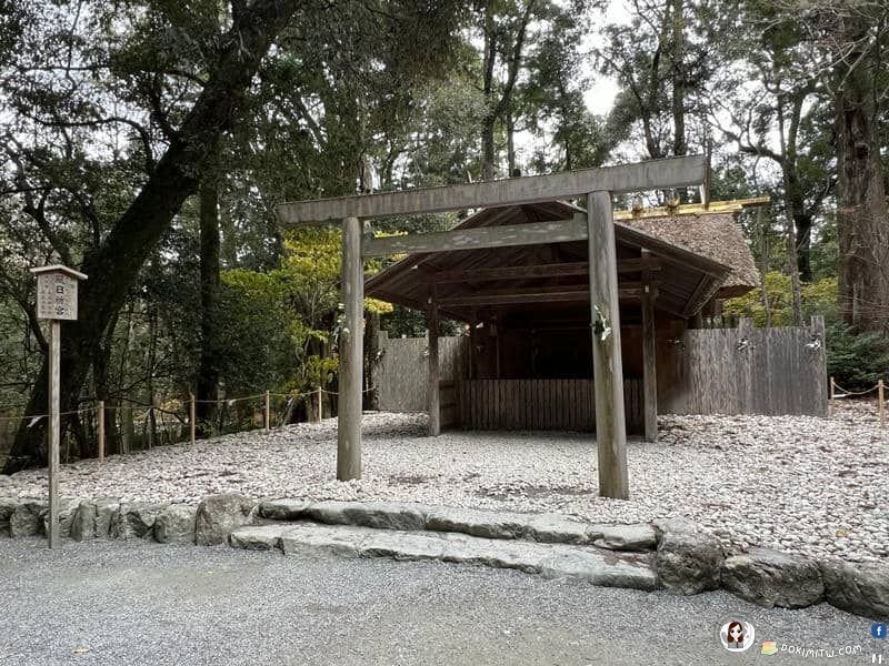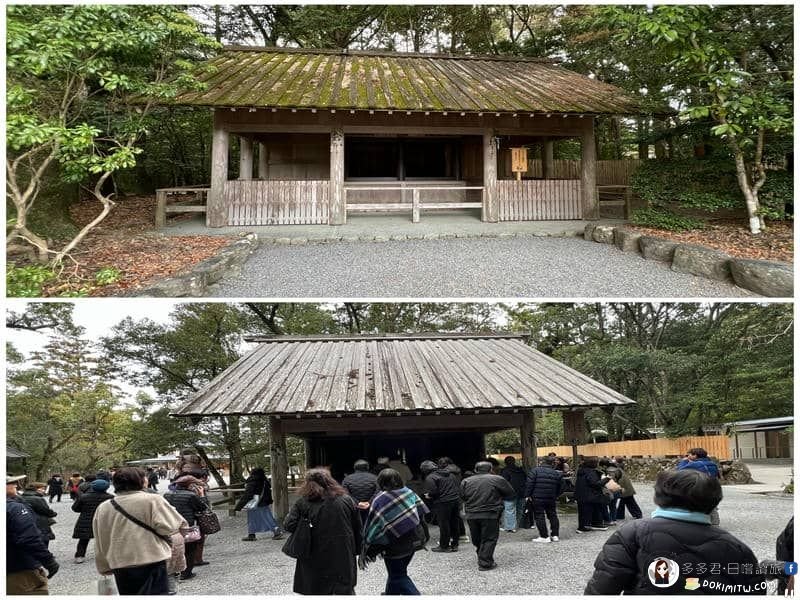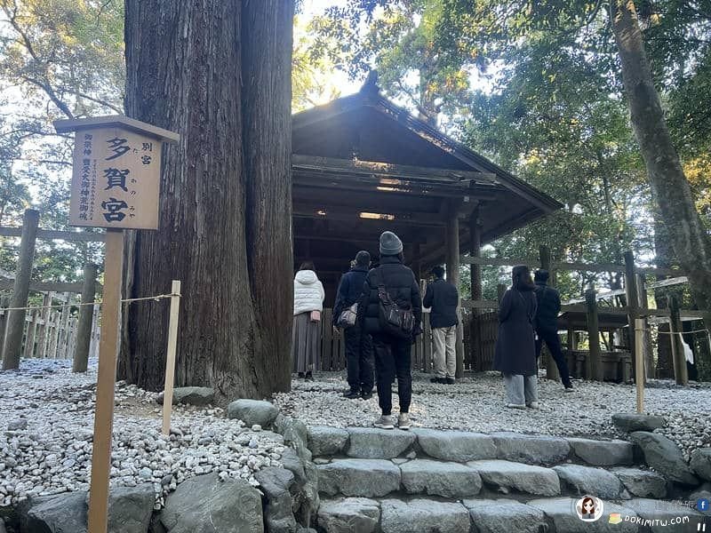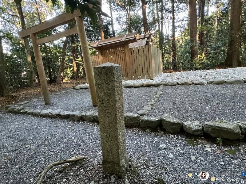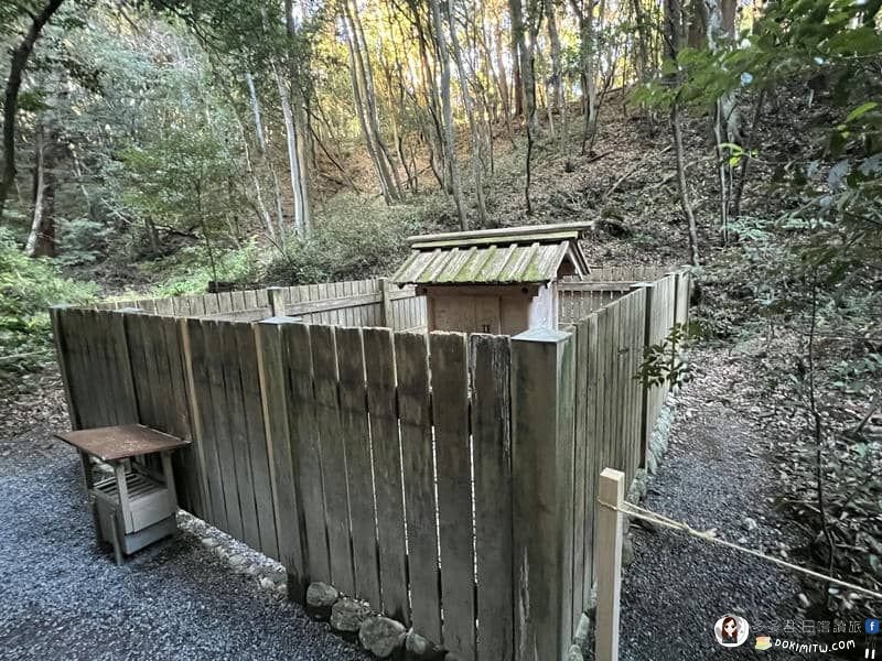 這裡是「多賀宮遙拜所」,它是為行動不便或時間有限,無法前往多賀宮者而設。其三面圍繞著繩索,站在沒有繩索的一面,可以面向多賀宮朝拜。