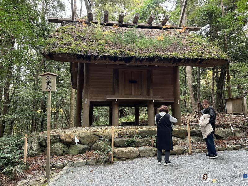 外宮「豊受大御神」,內部無法看到,也禁止照相,朝拜時只允許在「外玉垣南御門」與「板垣南御門」之間活動。