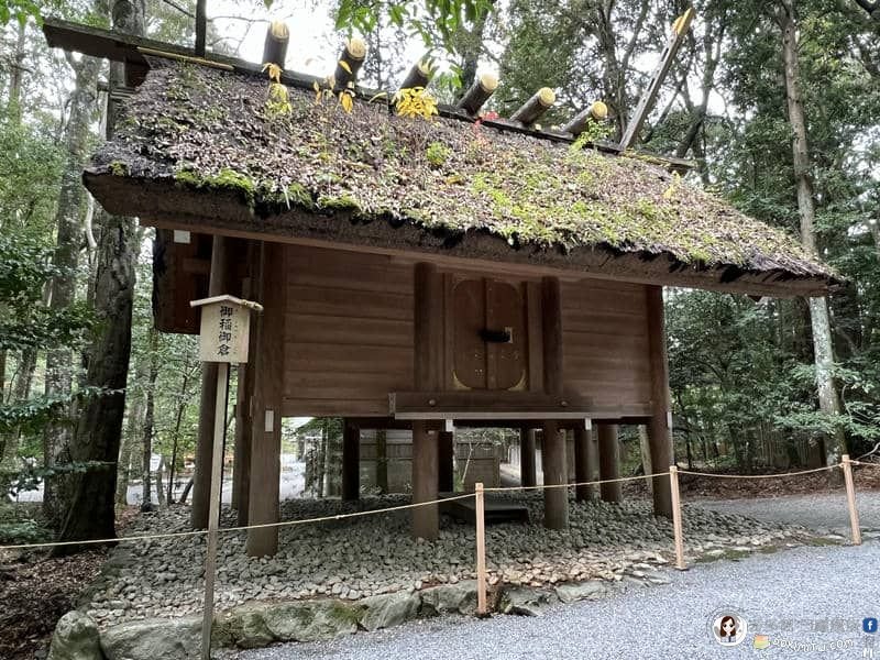 「御稻御倉」,為內宮的所管社,御祭神是御稻御倉神。放置神宮所轄神田的收穫,會用在三節祭。雖然建築規模不大,卻展現「神明造」建築特色。