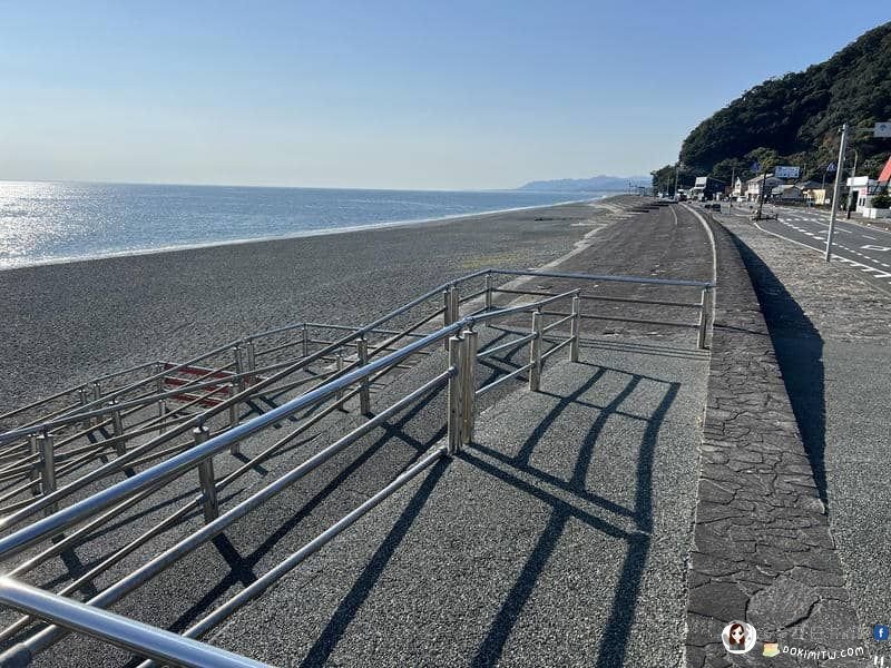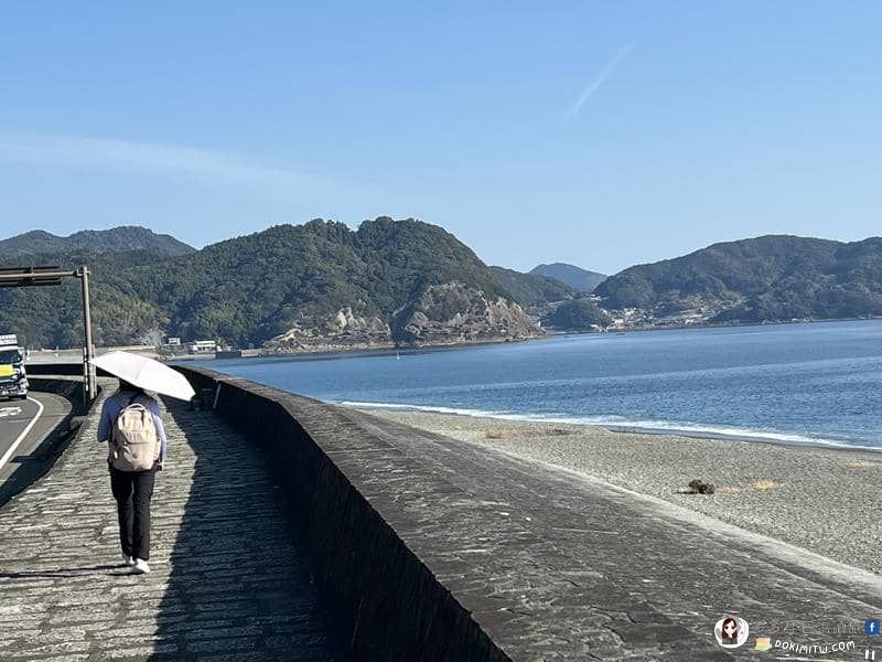 隨後,出了「花窟神社」,沿著海岸往北,我們走在濱街道(七里御濱)上。