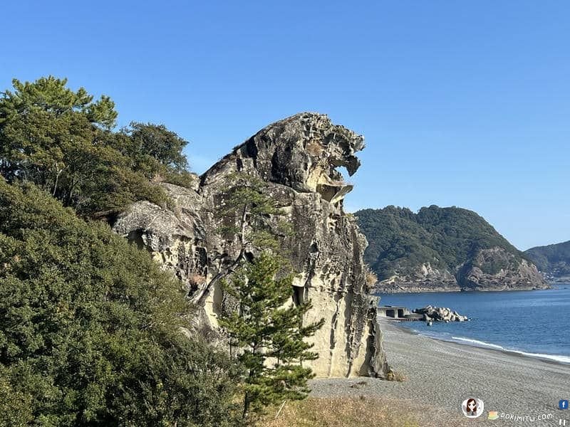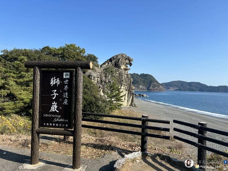 「獅子巖」,2004年被列入聯合國教科文組織世界文化遺產,為「紀伊山地靈場與參拜道」熊野古道伊勢路構成資產得一部分。