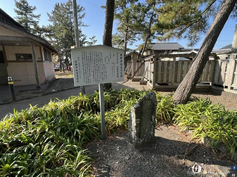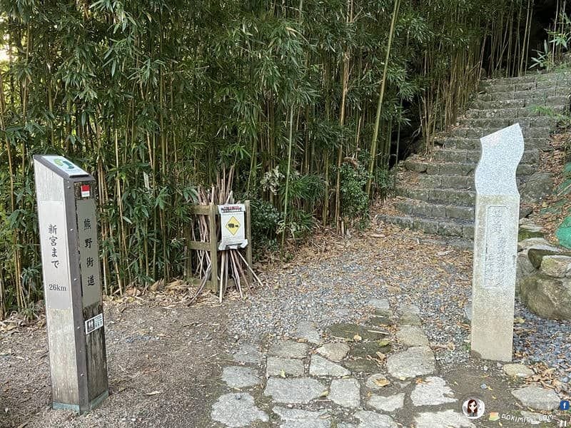 在「花窟神社」東側緊鄰國道#42,有一座「熊野街道」道標,熊野古道伊勢路第36座,標示「新宮22km、伊勢144km」。