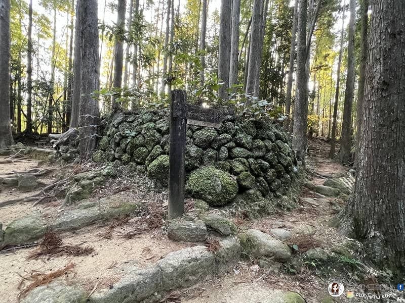 前往東屋(涼亭)和鬼城 城跡的路上,路標:鬼城 城跡、松本峠。