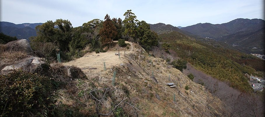 先放一張山頂上的「鬼城 城跡」的全景(實況是一塊空地),這張是「鬼ヶ城」網站所刊載,基本上咱們是拍不到的。