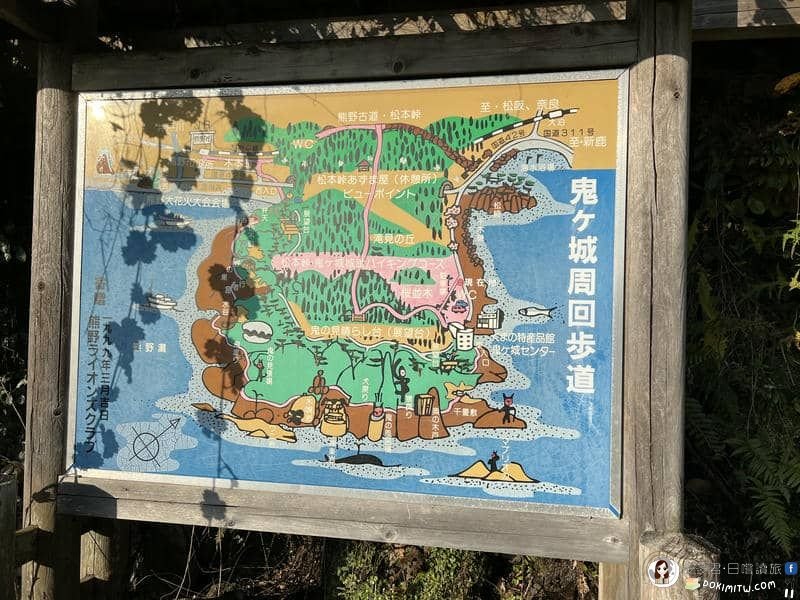 下到鬼城東口停車場,登山口有一幅「鬼城周圍步道」示意圖。