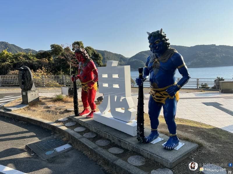 走過鬼城東口停車場,「鬼城中心」(鬼ヶ城センター)因為才八點多還沒營業,因此只能跟「鬼城中心」前的「鬼之像」留影。