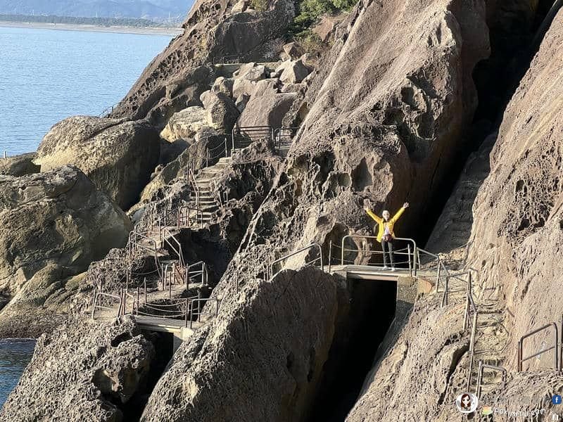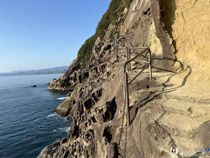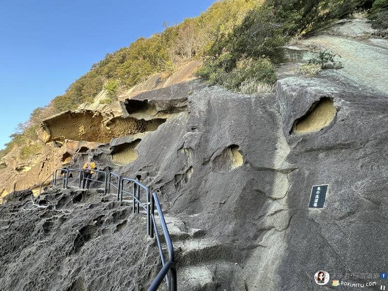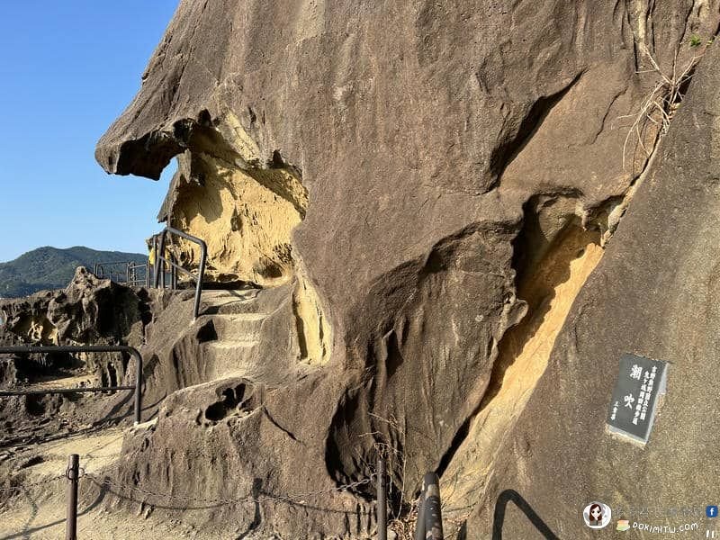 在這地方往下看,海浪猛烈拍打岩石,濺起白色水花,真像是巨大浴缸翻滾,有趣的是因此被說成「鬼の風呂桶」(鬼之浴缸)。