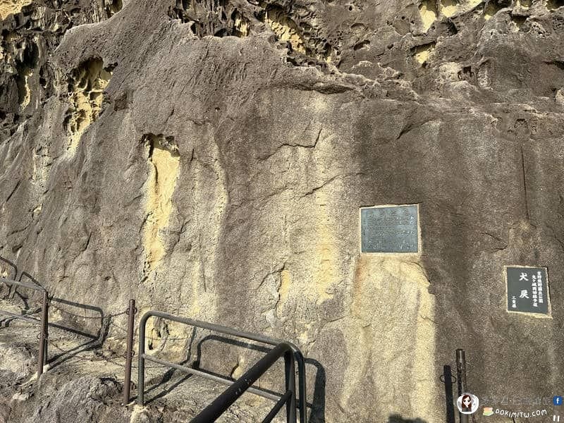 「猿戾」,上方的岩壁貌似動物攀爬的痕跡。