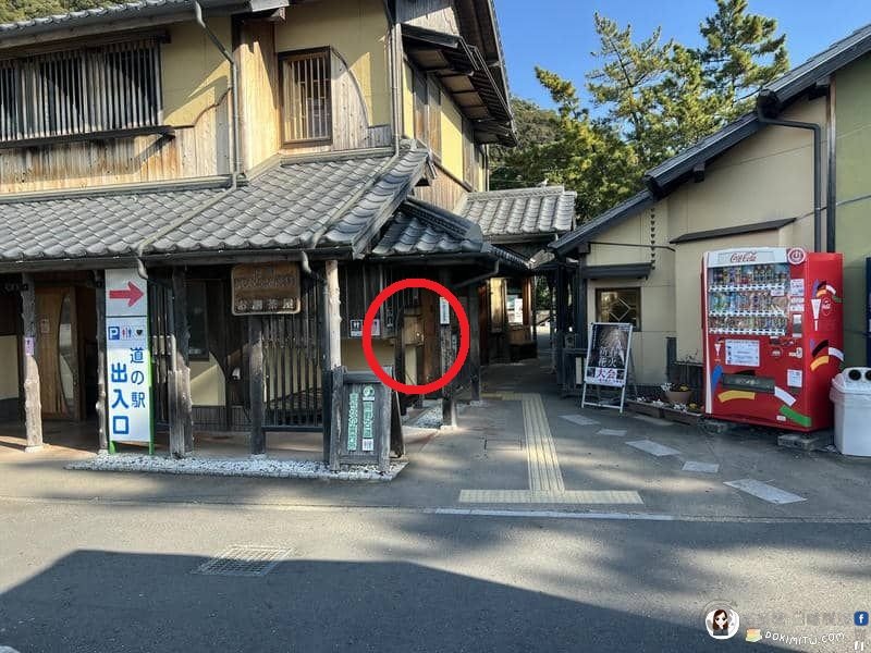 左側角落是「お綱茶屋」,其外牆上放置「道の駅 熊野・花の窟」QR Code讀取集章,沒注意可能還找不到,而押印蓋紀念章在右側小屋的資料陳列室內。