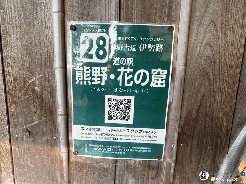 「道の駅 熊野・花の窟」是「熊野古道伊勢路」32個QR Code中的第二十八個,因此左上角「28」數字。