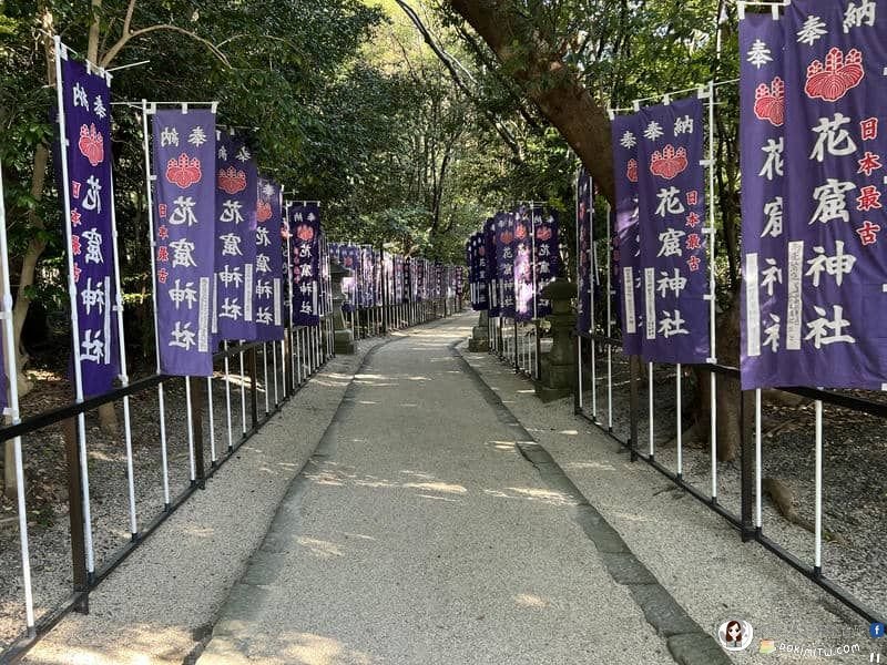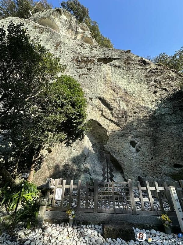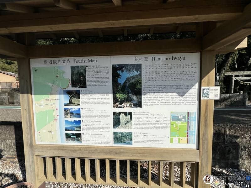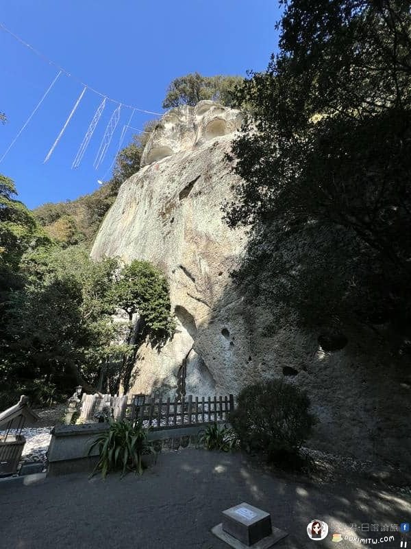 「花窟神社」,這裡埋葬著日本神話開天闢地的女神「伊弉冉尊」(伊邪那美命),人們摘下季節的花在神社內祭祀女神,所以神社以「花之窟」為名。