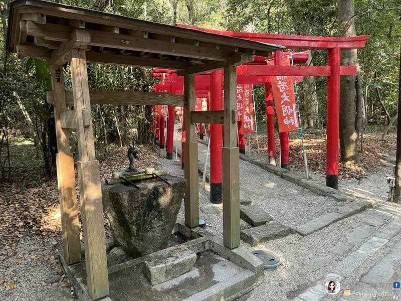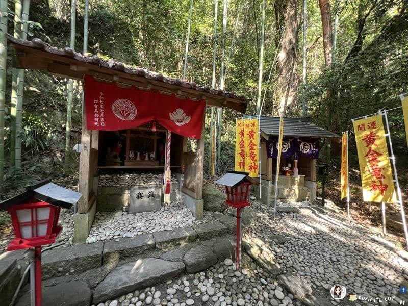 參拜道左側為「稻荷大明神」和「黃金龍神社」入口,其鳥居和手洗舍。