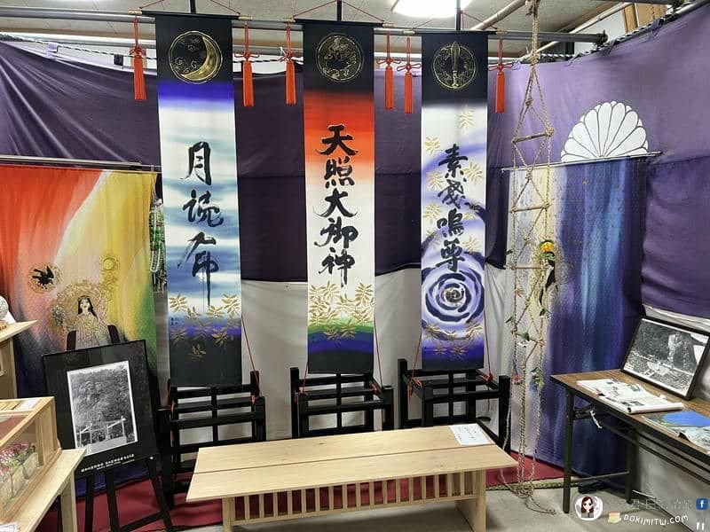 「参籠殿」右側,掛有代表「天神 天照大御神」、「月神 月讀大師」、「地神 素戔鳴尊」三神祉。