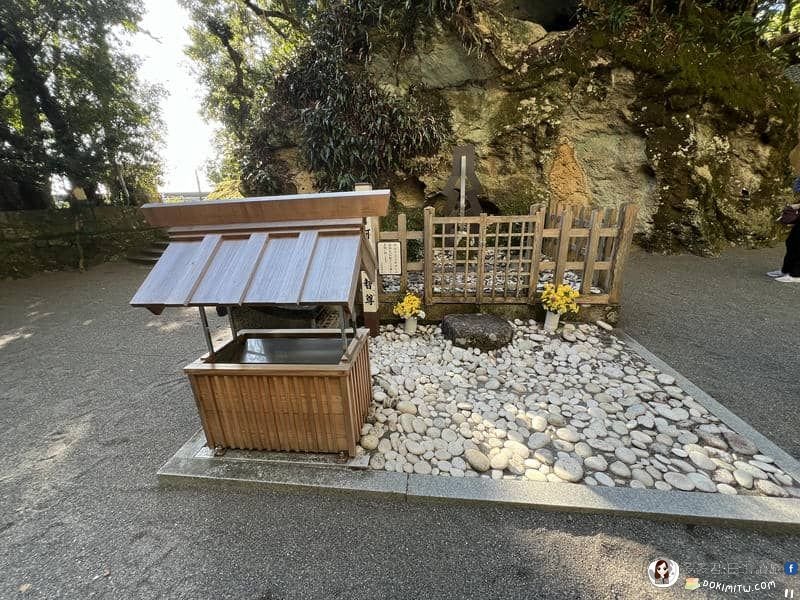 參拜道左側接下來是「花窟神社」手洗舍,其旁邊玉石是「丸石神」信仰。