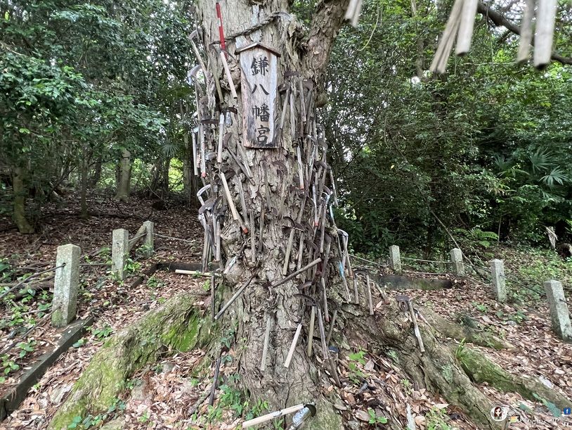 鎌八幡宮,是信仰鐮刀插在神樹上許願的地方。