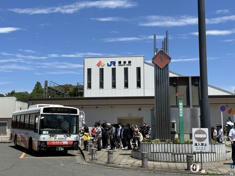 由於受到颱風過後第三天,JR和歌山線無法正常通行。我們到達JR橋本駅時,駅前旅客正搭乘巴士接駁車。