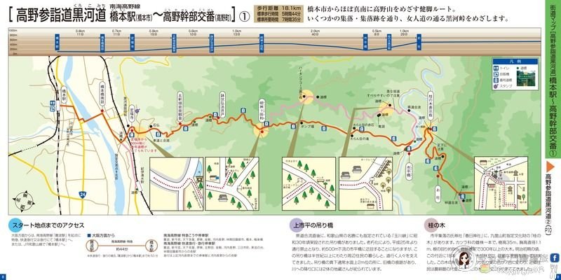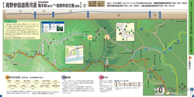 1230橋本駅→1252定福寺→1323五軒畑岩掛観音→1338鉢状弘法井戸→1354明神ヶ田和→1454市平橋→1509春日神社→1618久保小學校跡(くどやま森の童話館)→1738子繼峠(粉撞峠)→1813一本杉→1849黒河口女人堂跡→1857高野幹部交番