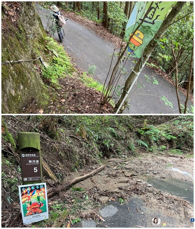 黑河道沿路陡峭,部分路段相當險阻,我們剛好又碰到颱風過後第三天走這條路。我們走的當天,高野參詣道「黑河道」雖有崩塌數處,仍然可以通行。可是隔了兩天,卻發現路口已張貼「禁止通行」牌示。
