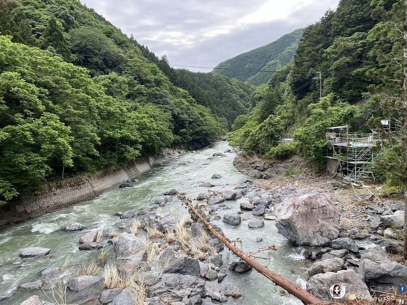 穿過了藁谷,山道往下走。與林道合流後,取右,沿著丹生川而走。